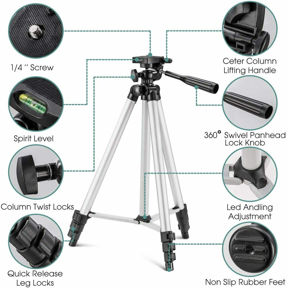 This portable, adjustable tripod is perfect for mobile phones, cameras, and DSLR use, ideal for vlogging and photography
